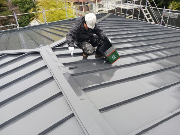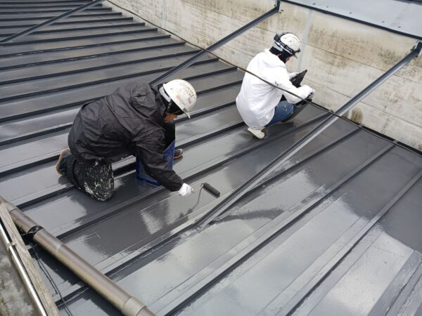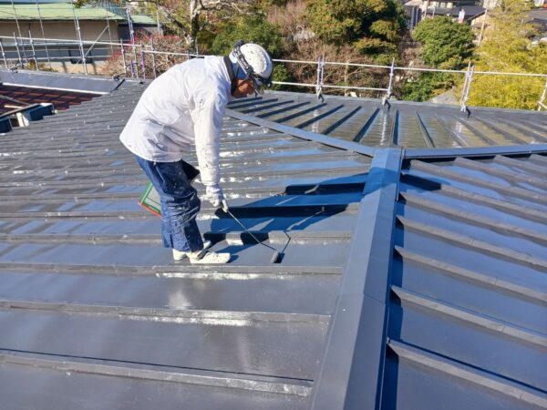 本日は、屋根上塗り作業です。