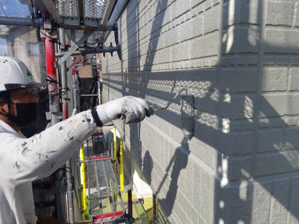 福岡県宗像市三郎丸N様施工4日目外壁中塗り作業