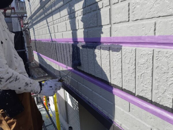 福岡県宗像市三郎丸N様施工5日目外壁中塗り二回目帯上塗り作業