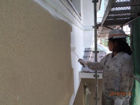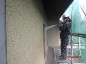 外壁上塗り 塗料の量を守り、お客様の希望に添った色に仕上げます