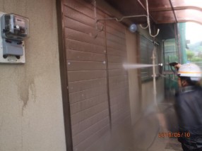 外壁洗浄 塗料が密着不良にならないよう、時間をかけてしっかり汚れを落とします