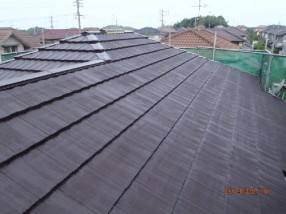 屋根上塗り 塗料の量を守り、お客様の希望に添った色に仕上げます